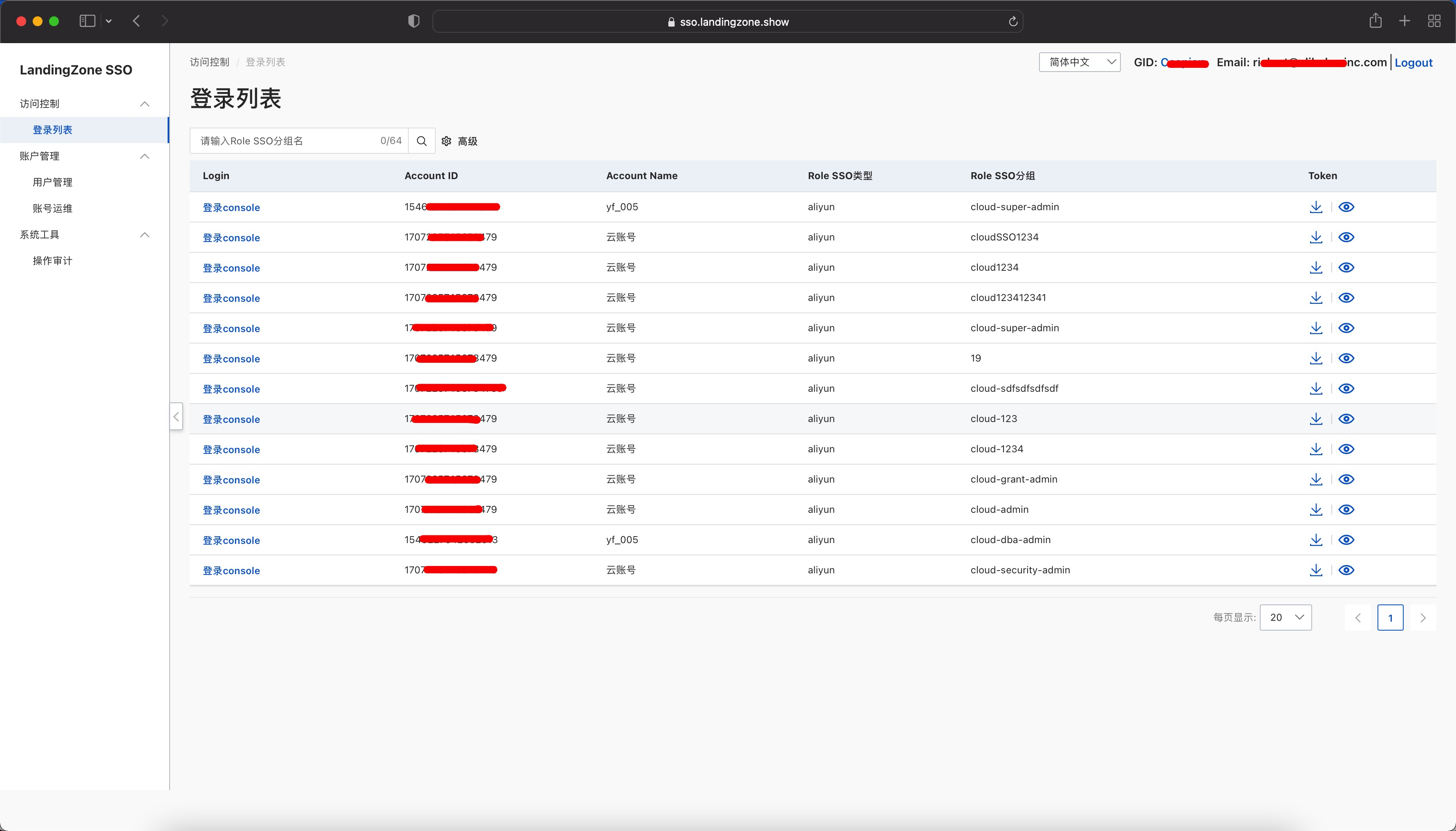 对企业存在的多账号进行统一的收编纳管,并进行分级授权,通过配置化的方式,实现基于Role的SSO单点登录。
