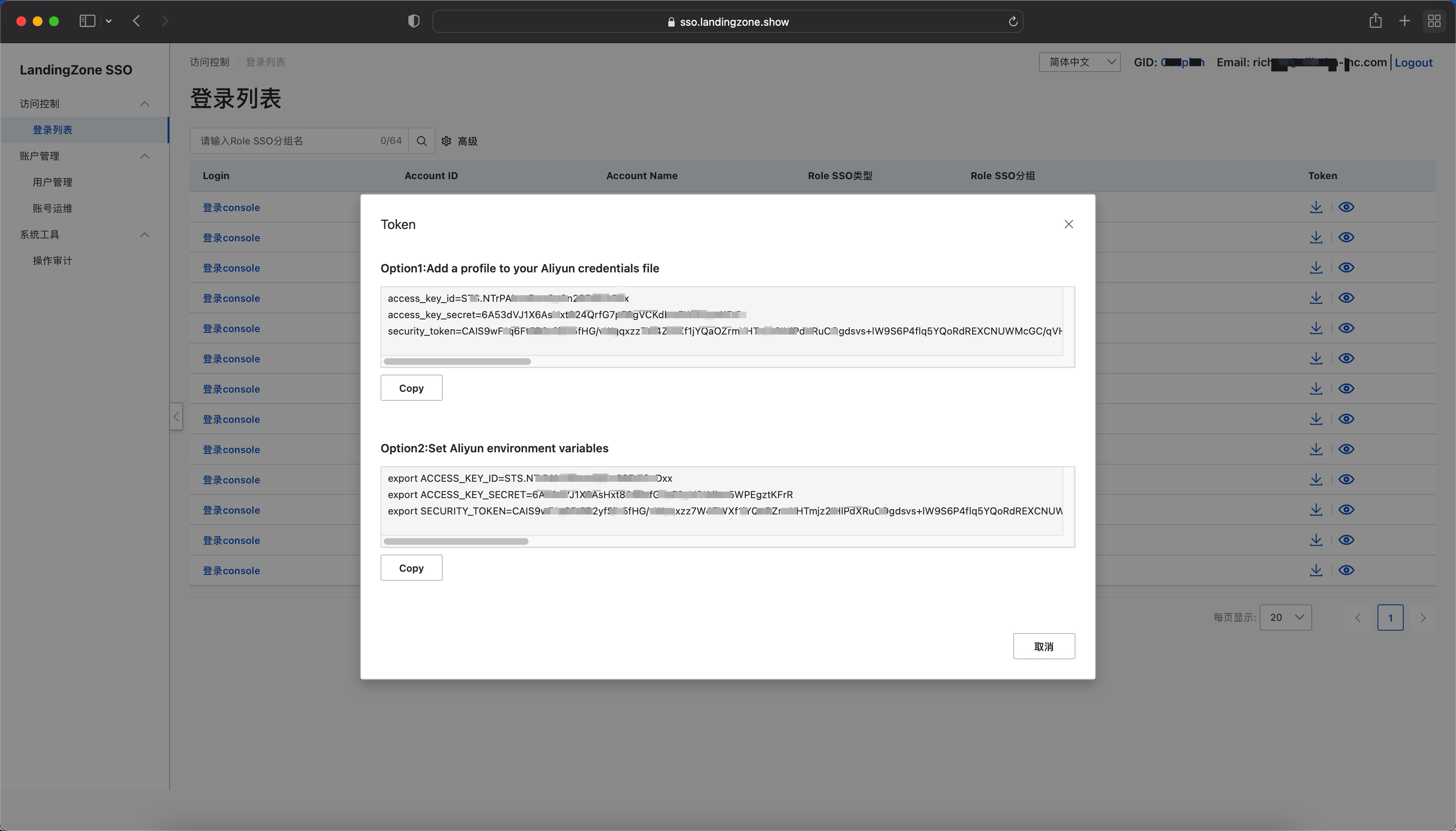 用户点击获取Token按钮,可以查看或下载Token信息。