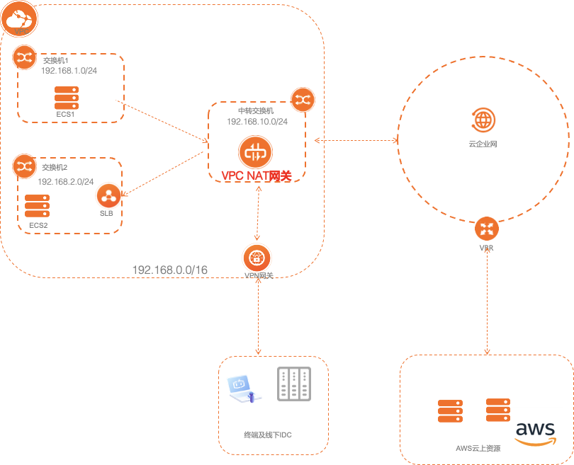 - 本章节主要聚焦VPC NAT、高速通道VBR和TR等产品的配置,以上产品的购买、基础配置不再本章节赘述。