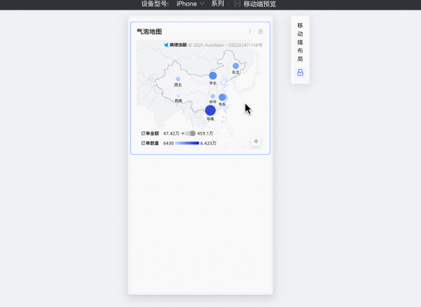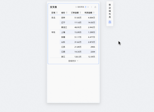 视图锁定 | 在移动端浏览报表时,由于表格类图表、地图类图表以及指标关系图内部可滑动,因此可能会在滑动报表过程中出现误触、不易定位数据等情况,您可以通过视图锁定操作,来固定当前图表组件视图,以避免图表中不必要的滑动。
